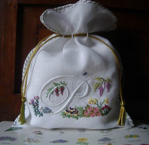 Così finalmente i fiorellini minuti hanno vinto la mia resistenza. Ho visto per la prima volte delle cifre fiorate alla fiera di Vicenza di un paio di anni fa: per una qualche ragione che non è utile analizzare le ho trovate antipatiche. Poi col tempo ho cominciato ad apprezzarle e adesso quando ci butto l'occhio le mani fremono. Vanno molto di moda le cifre dell'Alphabet brodè mille fleurs di Isabelle Gagnebin, bellissime, cariche in ogni tratto di fiori variopinti, ma ancora non sono riuscita a sfogliare il libro (Silvia, del blog In punta d'ago ne ha ricamate un po'). Ho acquistato invece quello di Diane Lampe's, Embroidery for all Season. In verità Diane non illustra in dettaglio l'esecuzione degli alfabeti, perchè si occupa dei giardini in miniatura, suggerendo ovviamente come allestirli nelle varie stagioni. Dai suoi giardini ho rubato qualche fiore per vestire una cifra imbottita, in una composizione veloce e impulsiva e dettata dalla voglia di provare, e ne è emerso un giardinetto primaverile essenziale, con qualche fiore iperfertilizzato e un'ape drogata. Questa non è chiaramente una classica cifra fiorata, ma un esperimento personale in tecnica mista.