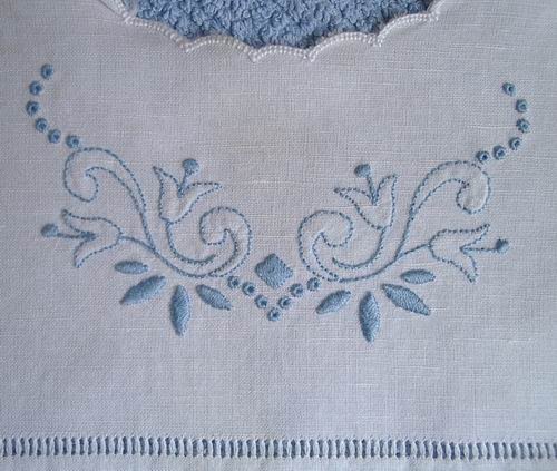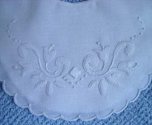 Nell' immagine che segue ecco il ricamo dell'abitino, non più in bianco su bianco, ma con filo azzurro.